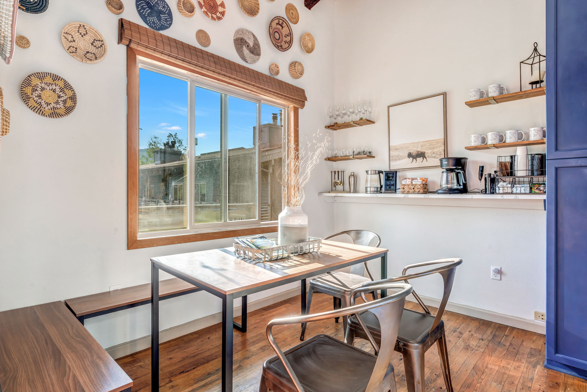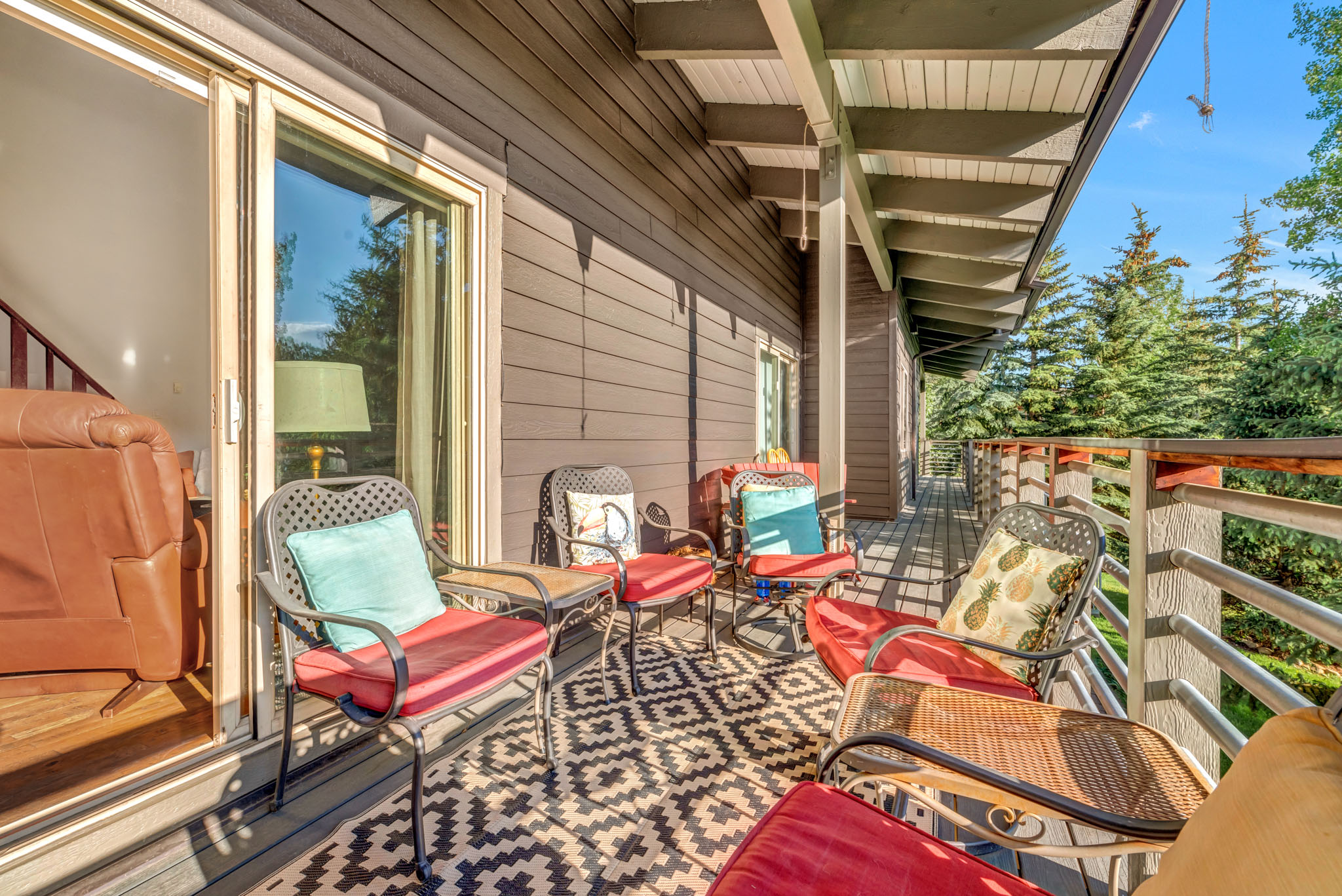 Outdoor Seating: Experience stunning sunset views from the outdoor patio at Ski Town Chalet, providing the perfect backdrop for relaxation and outdoor gatherings. Whether you're enjoying a glass of wine with friends or simply unwinding with a book, our patio offers a serene setting to soak in the beauty of the surrounding mountains as the sun sets.